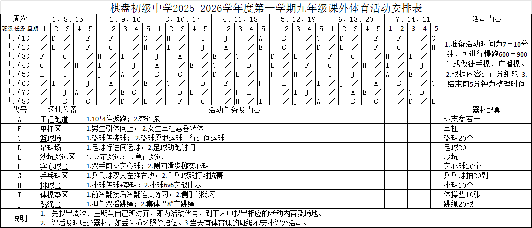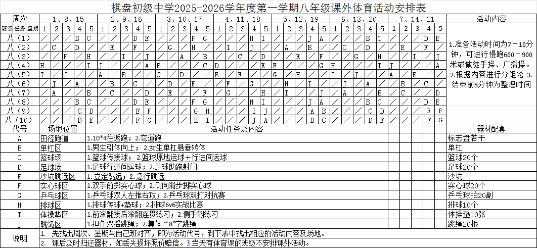 > 10、2025-2026学年度第一学期课外体育活动安排表