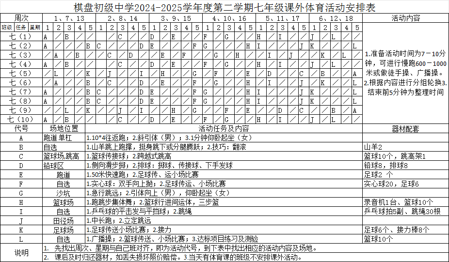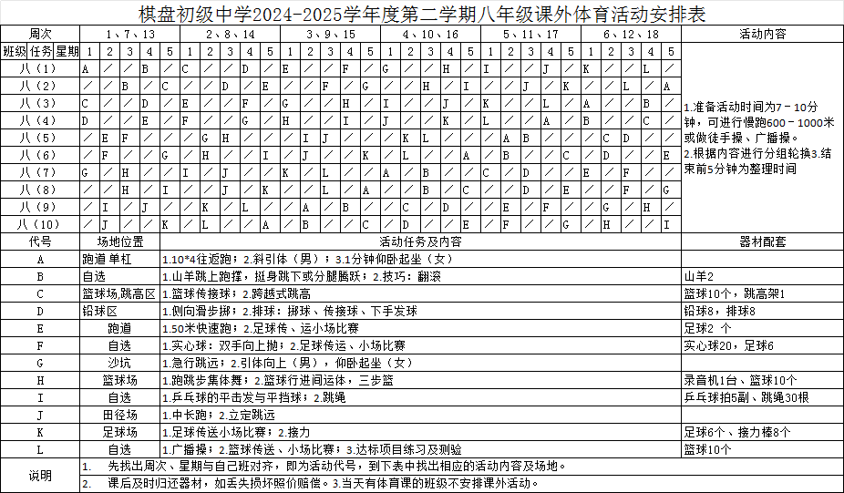 > 9、2024-2025学年度第二学期课外体育活动安排表