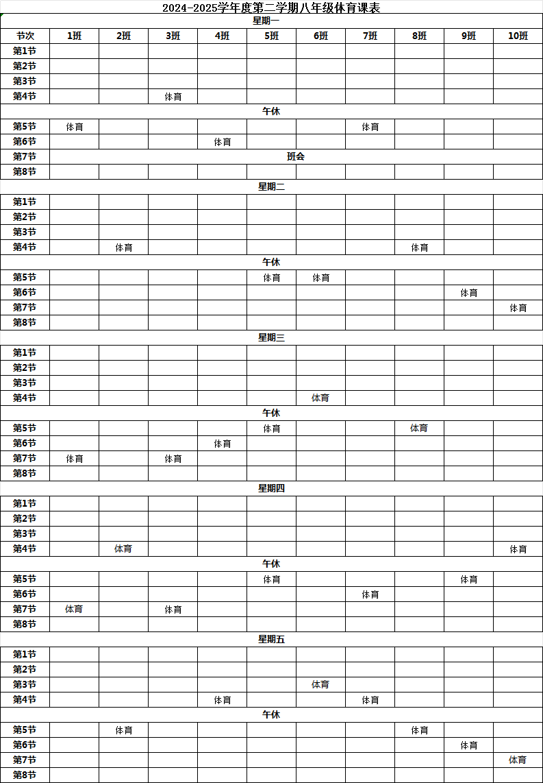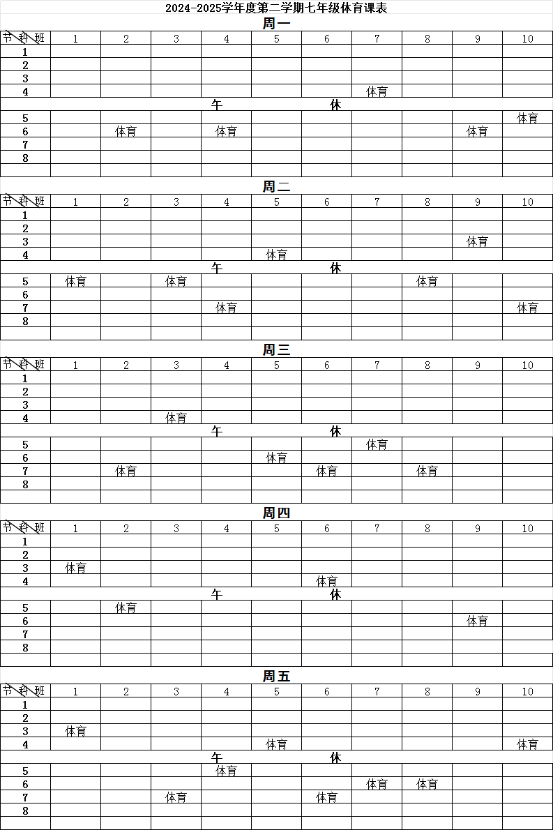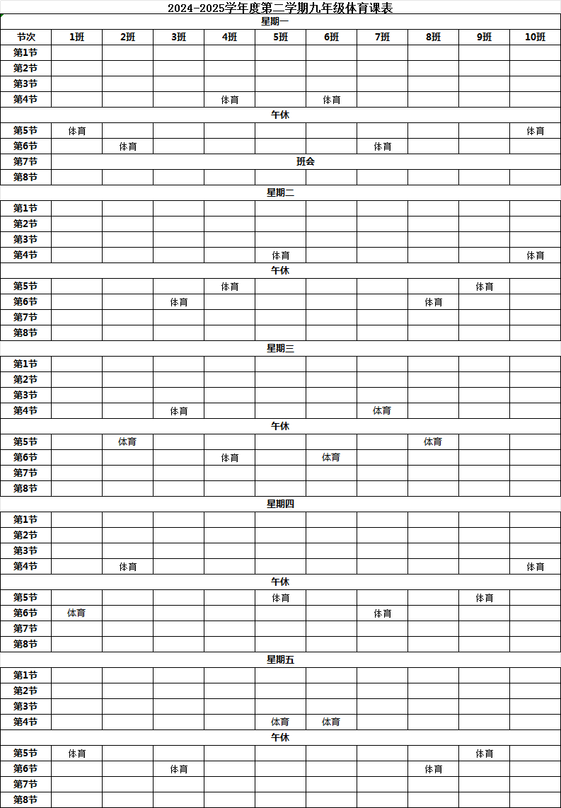 > 1、2024-2025学年度第二学期体育课表